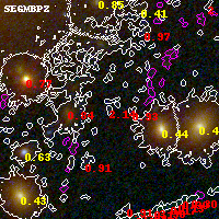 Black segments are analyzed here. Roll mouse over color images to view segments. Best viewed in a wide browser window (1200 pixels or more). Download SED & P(z) plots to view larger versions.