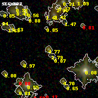 Black segments are analyzed here. Roll mouse over color images to view segments. Best viewed in a wide browser window (1200 pixels or more). Download SED & P(z) plots to view larger versions.