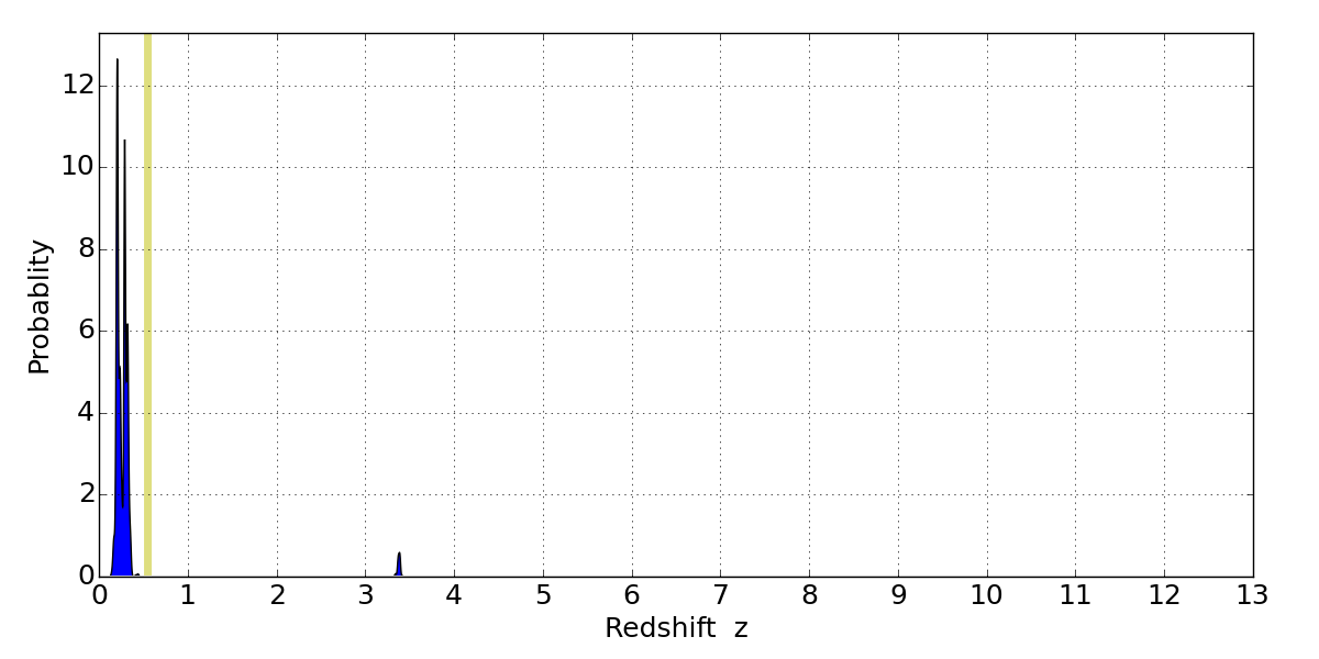 Best viewed in a wide browser window (1200 pixels or more). Download SED & P(z) plots to view larger versions.