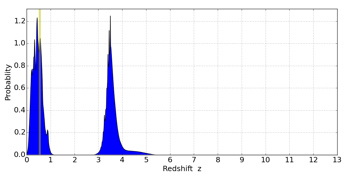 Best viewed in a wide browser window (1200 pixels or more). Download SED & P(z) plots to view larger versions.