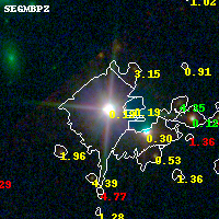 Object #616 x,y = (849, 2500) RA, Dec = (19:17:10.416, -33:30:55.80) = (289.29340, -33.51550) BPZ = 0.187 [0.034--0.357] type = 8.90 (SB2_B10 - SB1_B10) chisq2 = 0.01 ODDS = 0.49 z_cluster = 0.540