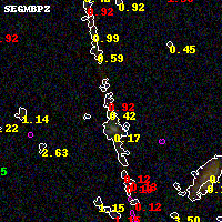 Black segments are analyzed here. Roll mouse over color images to view segments. Best viewed in a wide browser window (1200 pixels or more). Download SED & P(z) plots to view larger versions.