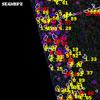 Black segments are analyzed here. Roll mouse over color images to view segments. Best viewed in a wide browser window (1200 pixels or more). Download SED & P(z) plots to view larger versions.