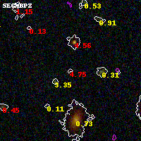 Black segments are analyzed here. Roll mouse over color images to view segments. Best viewed in a wide browser window (1200 pixels or more). Download SED & P(z) plots to view larger versions.