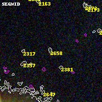 Black segments are analyzed here. Roll mouse over color images to view segments. Best viewed in a wide browser window (1200 pixels or more). Download SED & P(z) plots to view larger versions.