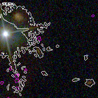 Black segments are analyzed here. Roll mouse over color images to view segments. Best viewed in a wide browser window (1200 pixels or more). Download SED & P(z) plots to view larger versions.