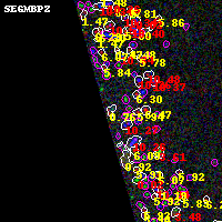 Black segments are analyzed here. Roll mouse over color images to view segments. Best viewed in a wide browser window (1200 pixels or more). Download SED & P(z) plots to view larger versions.