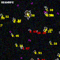 Black segments are analyzed here. Roll mouse over color images to view segments. Best viewed in a wide browser window (1200 pixels or more). Download SED & P(z) plots to view larger versions.