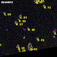 Black segments are analyzed here. Roll mouse over color images to view segments. Best viewed in a wide browser window (1200 pixels or more). Download SED & P(z) plots to view larger versions.