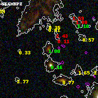 Object #2121 x,y = (2627, 3093) RA, Dec = (02:27:05.424, 49:01:05.16) = (36.77260, 49.01810) BPZ = 1.004 [0.927--1.063] type = 5.80 (Sbc_B10 - ES0_B10) chisq2 = 0.02 ODDS = 0.98 z_cluster = 0.702
