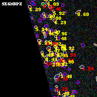 Object #3509 x,y = (730, 2353) RA, Dec = (02:27:16.992, 49:00:20.52) = (36.82080, 49.00570) BPZ = 6.474 [6.218--8.287] type = 6.00 (Sbc_B10) chisq2 = 0.00 ODDS = 0.55 z_cluster = 0.702
