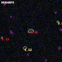 Object #5167 x,y = (2739, 1411) RA, Dec = (02:27:04.752, 48:59:24.00) = (36.76980, 48.99000) BPZ = 0.448 [0.417--0.778] type = 9.60 (SB3_B10 - SB2_B10) chisq2 = 1.30 ODDS = 0.75 z_cluster = 0.702