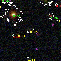 Object #5483 x,y = (2465, 1339) RA, Dec = (02:27:06.408, 48:59:19.68) = (36.77670, 48.98880) BPZ = 0.446 [0.123--0.771] type = 9.60 (SB3_B10 - SB2_B10) chisq2 = 0.42 ODDS = 0.43 z_cluster = 0.702