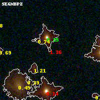 Black segments are analyzed here. Roll mouse over color images to view segments. Best viewed in a wide browser window (1200 pixels or more). Download SED & P(z) plots to view larger versions.