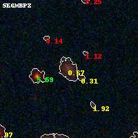 Black segments are analyzed here. Roll mouse over color images to view segments. Best viewed in a wide browser window (1200 pixels or more). Download SED & P(z) plots to view larger versions.