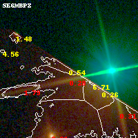 Object #32 x,y = (2172, 3915) RA, Dec = (02:27:08.208, 49:01:54.48) = (36.78420, 49.03180) BPZ = 0.543 [0.449--0.653] type = 2.60 (Ell5_A_0 - Ell6_A_0) chisq2 = 0.23 ODDS = 0.77 z_cluster = 0.702