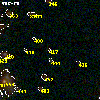 Object #417 x,y = (2570, 2876) RA, Dec = (02:27:05.784, 49:00:51.84) = (36.77410, 49.01440) BPZ = 1.099 [0.273--5.481] type = 7.10 (Scd_B10 - SB1_B10) chisq2 = 0.96 ODDS = 0.07 z_cluster = 0.702