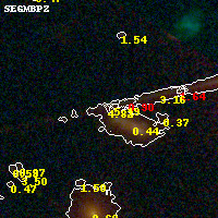 Object #452 x,y = (3764, 2802) RA, Dec = (02:26:58.488, 49:00:47.52) = (36.74370, 49.01320) BPZ = 4.822 [0.401--5.412] type = 7.60 (SB1_B10 - Scd_B10) chisq2 = 0.47 ODDS = 0.49 z_cluster = 0.702