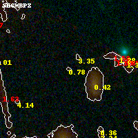Object #50 x,y = (2380, 3718) RA, Dec = (02:27:06.936, 49:01:42.60) = (36.77890, 49.02850) BPZ = 0.780 [0.122--3.587] type = 10.50 (SB11_A_0_l - SB3_B10) chisq2 = 0.32 ODDS = 0.11 z_cluster = 0.702