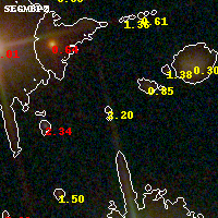 Object #614 x,y = (3095, 2619) RA, Dec = (02:27:02.568, 49:00:36.72) = (36.76070, 49.01020) BPZ = 2.199 [0.631--3.185] type = 9.30 (SB2_B10 - SB3_B10) chisq2 = 0.81 ODDS = 0.17 z_cluster = 0.702