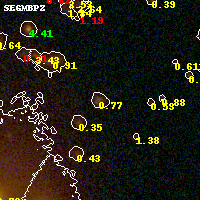 Object #623 x,y = (2533, 2601) RA, Dec = (02:27:06.000, 49:00:35.64) = (36.77500, 49.00990) BPZ = 0.774 [0.703--0.918] type = 9.00 (SB2_B10) chisq2 = 0.97 ODDS = 0.73 z_cluster = 0.702