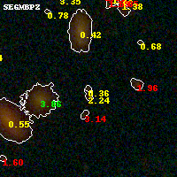 Object #66 x,y = (2426, 3630) RA, Dec = (02:27:06.672, 49:01:37.20) = (36.77780, 49.02700) BPZ = 0.364 [0.137--3.652] type = 8.40 (SB1_B10 - SB2_B10) chisq2 = 0.55 ODDS = 0.07 z_cluster = 0.702