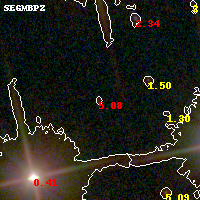 Object #672 x,y = (3001, 2522) RA, Dec = (02:27:03.144, 49:00:30.60) = (36.76310, 49.00850) BPZ = 5.080 [0.947--5.476] type = 10.80 (SB11_A_0_l - SB3_B10) chisq2 = 1.26 ODDS = 0.60 z_cluster = 0.702