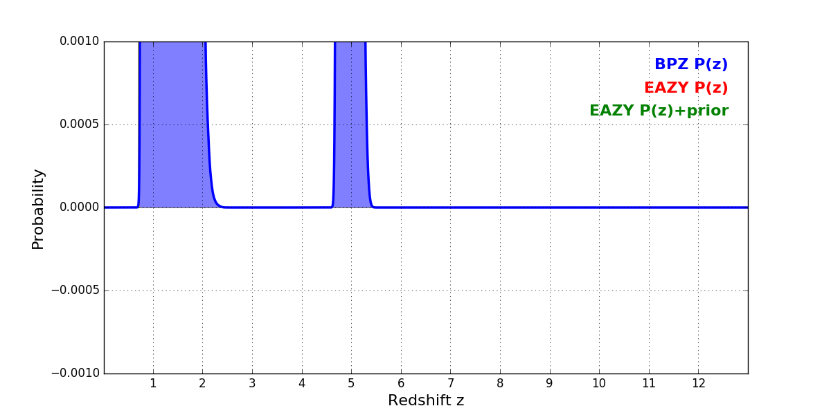 In P(z) plots: Yellow lines mark the cluster redshift z = 0.702,