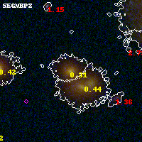Black segments are analyzed here. Roll mouse over color images to view segments. Best viewed in a wide browser window (1200 pixels or more). Download SED & P(z) plots to view larger versions.