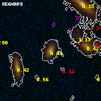 Black segments are analyzed here. Roll mouse over color images to view segments. Best viewed in a wide browser window (1200 pixels or more). Download SED & P(z) plots to view larger versions.