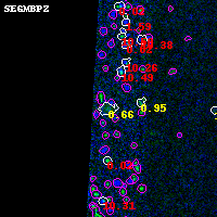 Black segments are analyzed here. Roll mouse over color images to view segments. Best viewed in a wide browser window (1200 pixels or more). Download SED & P(z) plots to view larger versions.