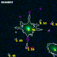 Black segments are analyzed here. Roll mouse over color images to view segments. Best viewed in a wide browser window (1200 pixels or more). Download SED & P(z) plots to view larger versions.