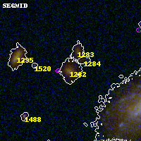 Black segments are analyzed here. Roll mouse over color images to view segments. Best viewed in a wide browser window (1200 pixels or more). Download SED & P(z) plots to view larger versions.