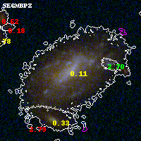 Object #1340   x,y = (1998, 3172)   RA, Dec = (03:12:59.136, 08:23:01.32) = (48.24640, 8.38370)   BPZ = 0.114 [0.053--0.176]   type = 9.40 (SB2_B10 - SB3_B10)   stellarity = 0.00   chisq2 = 0.19   ODDS = 0.86   z_cluster = 0.270
