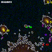 Black segments are analyzed here. Roll mouse over color images to view segments. Best viewed in a wide browser window (1200 pixels or more). Download SED & P(z) plots to view larger versions.