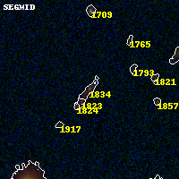 Black segments are analyzed here. Roll mouse over color images to view segments. Best viewed in a wide browser window (1200 pixels or more). Download SED & P(z) plots to view larger versions.