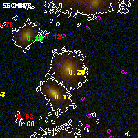 Black segments are analyzed here. Roll mouse over color images to view segments. Best viewed in a wide browser window (1200 pixels or more). Download SED & P(z) plots to view larger versions.