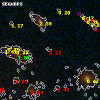 Black segments are analyzed here. Roll mouse over color images to view segments. Best viewed in a wide browser window (1200 pixels or more). Download SED & P(z) plots to view larger versions.