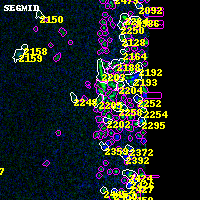 Black segments are analyzed here. Roll mouse over color images to view segments. Best viewed in a wide browser window (1200 pixels or more). Download SED & P(z) plots to view larger versions.