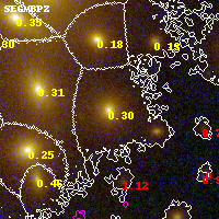 Black segments are analyzed here. Roll mouse over color images to view segments. Best viewed in a wide browser window (1200 pixels or more). Download SED & P(z) plots to view larger versions.
