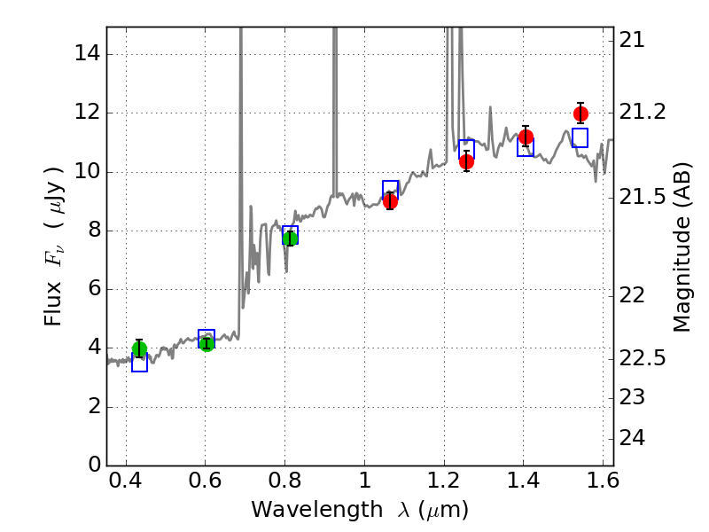 Object #2575   x,y = (2111, 2348)   RA, Dec = (03:12:58.680, 08:22:11.64) = (48.24450, 8.36990)   BPZ = 0.846 [0.749--1.011]   type = 9.10 (SB2_B10 - SB3_B10)   stellarity = 0.03   chisq2 = 0.53   ODDS = 0.75   z_cluster = 0.270