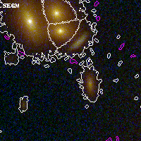 Black segments are analyzed here. Roll mouse over color images to view segments. Best viewed in a wide browser window (1200 pixels or more). Download SED & P(z) plots to view larger versions.