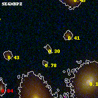 Object #3029   x,y = (2076, 2664)   RA, Dec = (03:12:58.824, 08:22:30.72) = (48.24510, 8.37520)   BPZ = 0.300 [0.124--3.842]   type = 9.50 (SB3_B10 - SB2_B10)   stellarity = 0.00   chisq2 = 0.57   ODDS = 0.31   z_cluster = 0.270