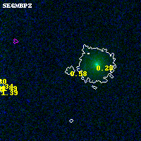 Object #3243   x,y = (866, 1954)   RA, Dec = (03:13:03.696, 08:21:48.24) = (48.26540, 8.36340)   BPZ = 0.576 [0.195--1.647]   type = 7.60 (SB1_B10 - Scd_B10)   stellarity = 0.00   chisq2 = 0.08   ODDS = 0.18   z_cluster = 0.270
