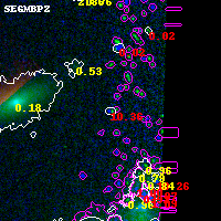 Black segments are analyzed here. Roll mouse over color images to view segments. Best viewed in a wide browser window (1200 pixels or more). Download SED & P(z) plots to view larger versions.