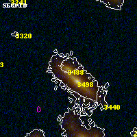 Object #3488   x,y = (3009, 1853)   RA, Dec = (03:12:55.032, 08:21:42.12) = (48.22930, 8.36170)   BPZ = 0.155 [0.094--0.450]   type = 4.00 (Ell4_A_0)   stellarity = 0.03   chisq2 = 0.24   ODDS = 0.48   z_cluster = 0.270