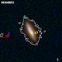 Object #3556   x,y = (3065, 1984)   RA, Dec = (03:12:54.816, 08:21:50.04) = (48.22840, 8.36390)   BPZ = 0.172 [0.113--0.239]   type = 7.20 (Scd_B10 - SB1_B10)   stellarity = 0.06   chisq2 = 0.05   ODDS = 0.87   z_cluster = 0.270