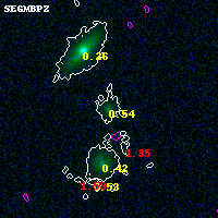 Black segments are analyzed here. Roll mouse over color images to view segments. Best viewed in a wide browser window (1200 pixels or more). Download SED & P(z) plots to view larger versions.