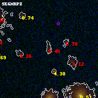 Black segments are analyzed here. Roll mouse over color images to view segments. Best viewed in a wide browser window (1200 pixels or more). Download SED & P(z) plots to view larger versions.