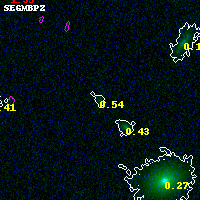 Black segments are analyzed here. Roll mouse over color images to view segments. Best viewed in a wide browser window (1200 pixels or more). Download SED & P(z) plots to view larger versions.
